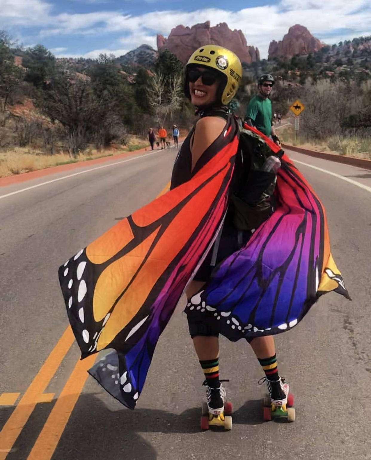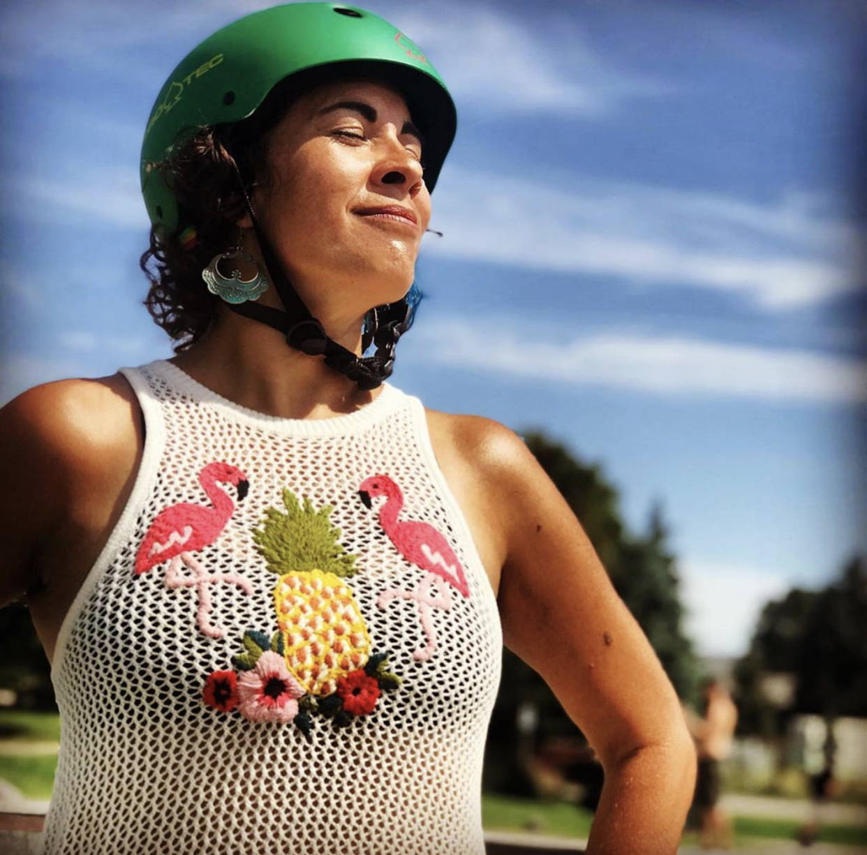 Slowly the fear went away and she was welcomed and began to learn but realized local groups were a lil scarce at the time and the few of her friends that liked to skate together slowly started inviting others. Others started inviting others and before you knew it, the group needed a name. The group formed organically and mostly by word of mouth for months before it hit social media. Rikan chose the name Wheel House Scouts because they were all wheels not just skates in their family and they were always up for traveling to scout a new park! Rikan holds weekly meetups called Troop Meetings rotating through their many beautiful 170+ CO parks and encourage all skills & wheels, offering cheering and unlimited high fives! Their group is always welcoming new humans and continuously growing. They partnered up with great projects and lead by example. You can find them, cleaning parks with groups like Skatepark Respect from Oceanside, CA or a variety of local Colorado events and collaborations. Rikan owns a Catering & Events Company and takes any chance to feed the skaters. She stands for Community over Competition and believes it’s the driving force leading her in the direction of these great opportunities.